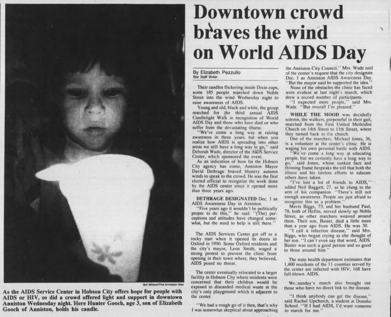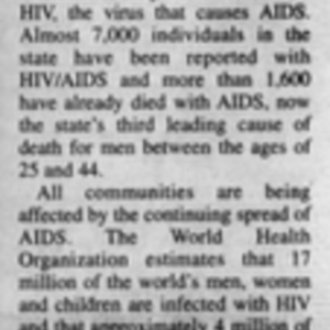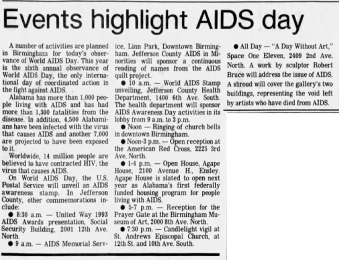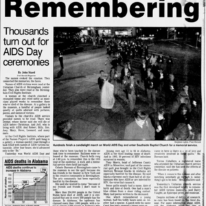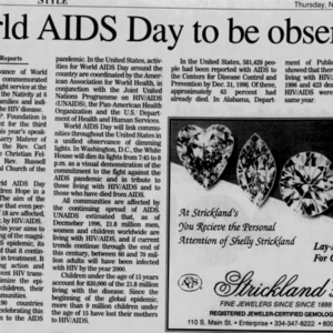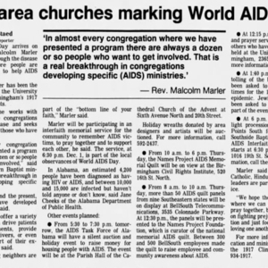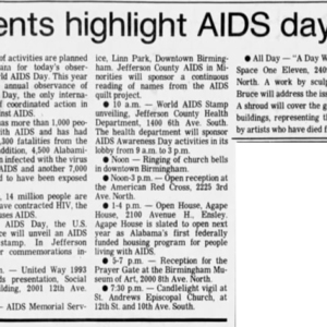 1990s newspaper clippings about World AIDS day observances in Alabama.