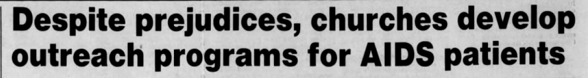 A clipping of a scan of the October 21, 1989 Montgomery Advertiser focused on a headline announcing churches creating outreach programs for AIDS patients.