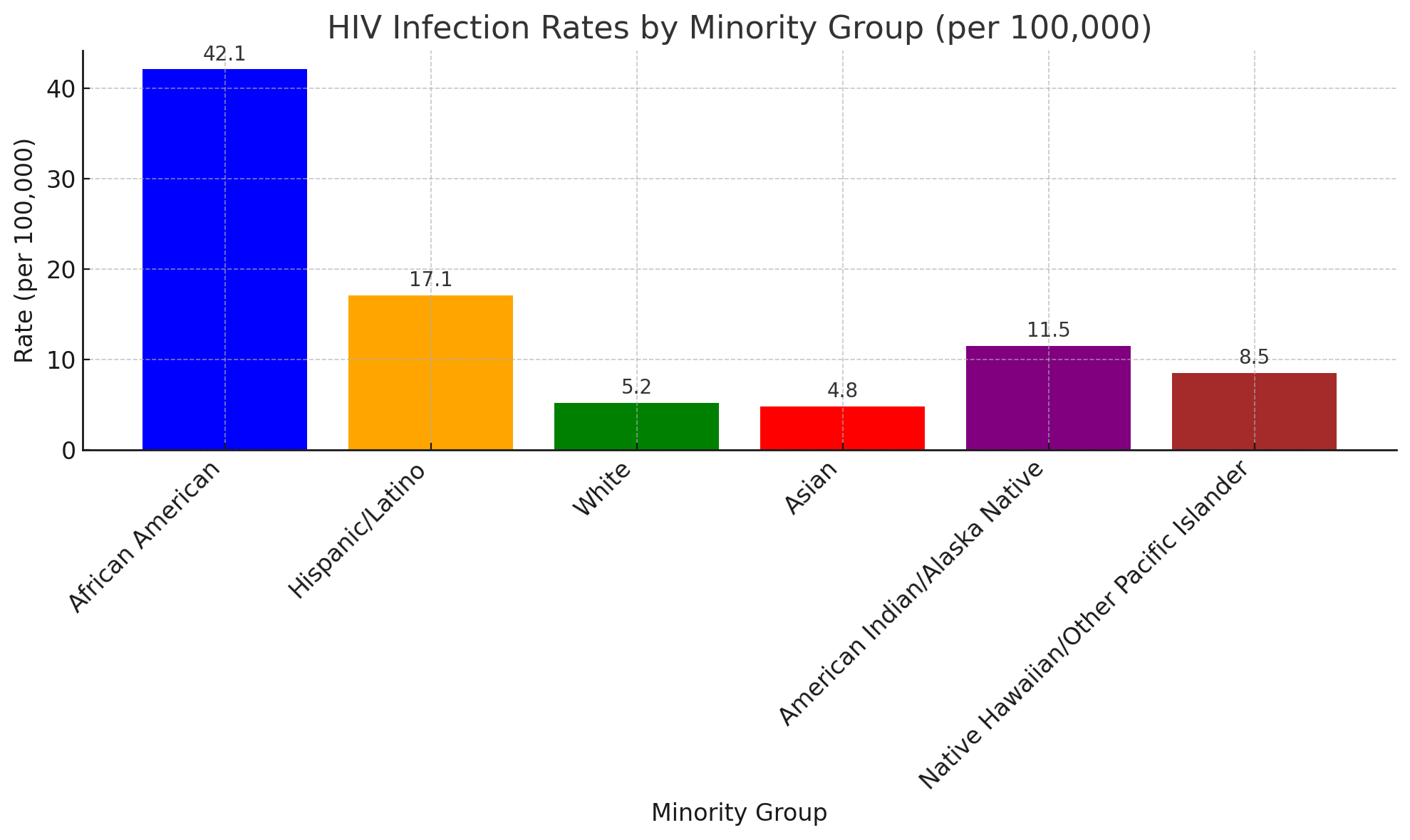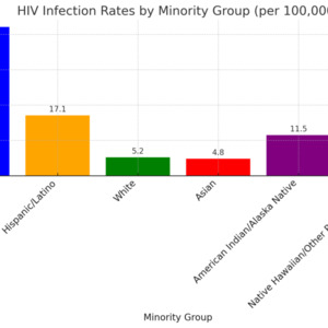 A visual representation of HIV infection rates per 100,000 for various minority groups based on data from HIV.gov.