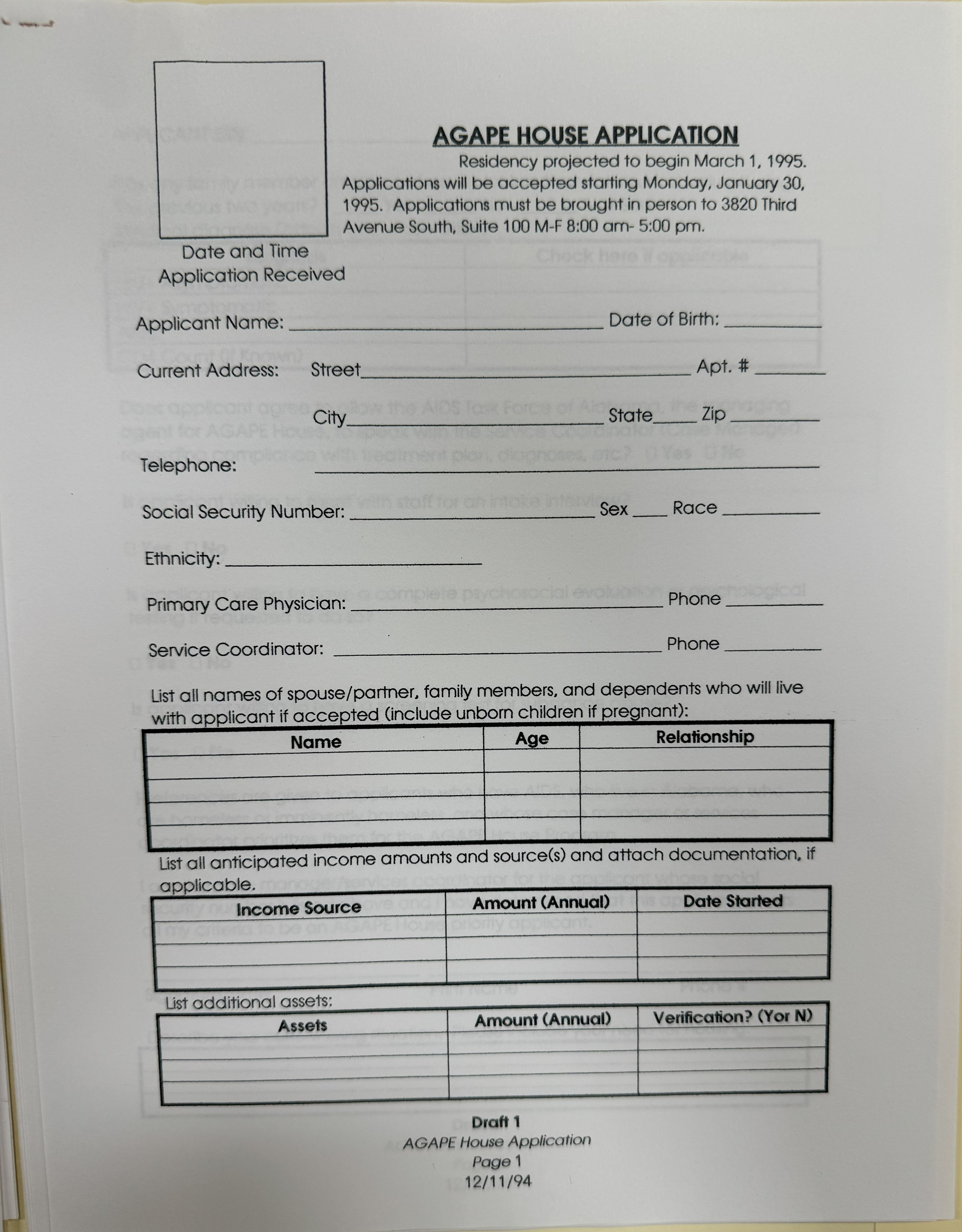 AIDS Taskforce of Alabama, “Agape House Application,” UAH Archives, Special Collections, and Digital Initiatives, accessed February 11, 2026, https://digitalprojects.uah.edu/items/show/14720.