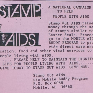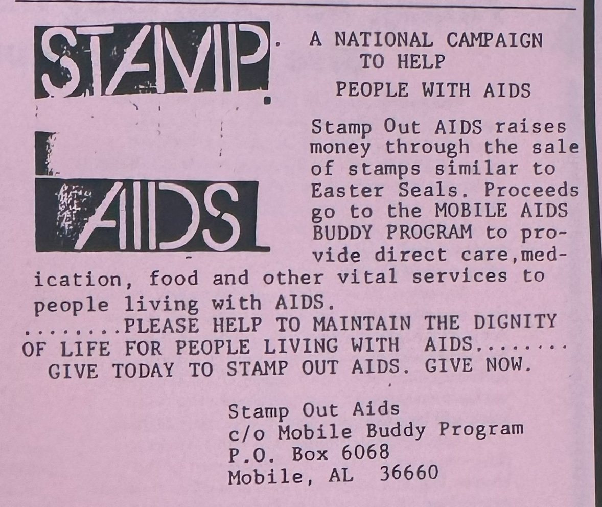 Metropolitan Community Church, “Stamp Out AIDS Clipping From MCC Newsletter,” UAH Archives, Special Collections, and Digital Initiatives, accessed February 11, 2026, https://digitalprojects.uah.edu/items/show/14742.