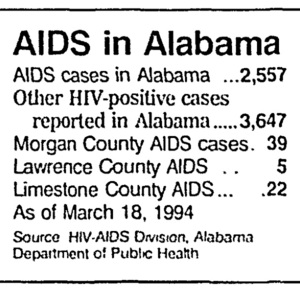 HIV-AIDS Division, Alabama Department of Public Health , “AIDS in Alabama in the Decatur Daily,” UAH Archives, Special Collections, and Digital Initiatives, accessed February 11, 2026, https://digitalprojects.uah.edu/items/show/14754.