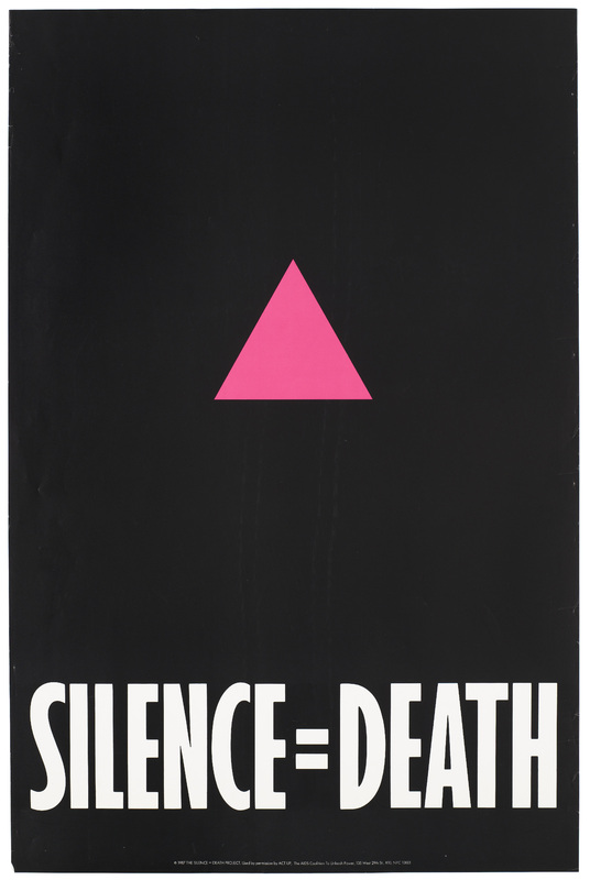 https://en.wikipedia.org/wiki/Silence%3DDeath_Project#/media/File:A_pink_triangle_against_a_black_backdrop_with_the_words_'Silence=Death'_representing_an_advertisement_for_The_Silence_=_Death_Project_used_by_permission_by_ACT-UP,_The_AIDS_Coalition_To_Unleash_Power._Wellcome_L0052822.jpg