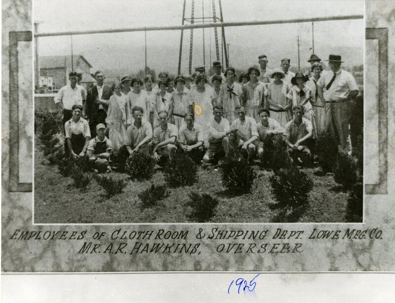 Lowe Mill relied heavily off of a water tower to maintain its production capabilities as a textile mill. The shipping and cloth room employees pose for a photo in front of the water tower in 1925.