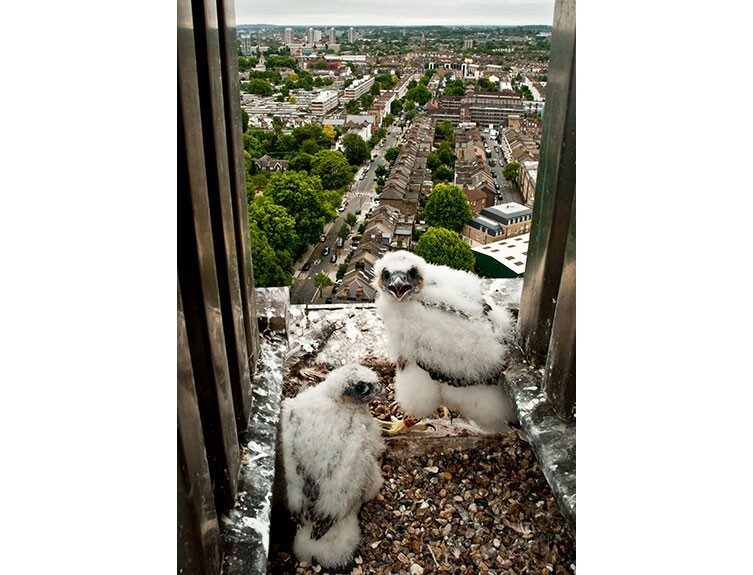 Peregrine Falcon chicks nesting in a London high-rise
