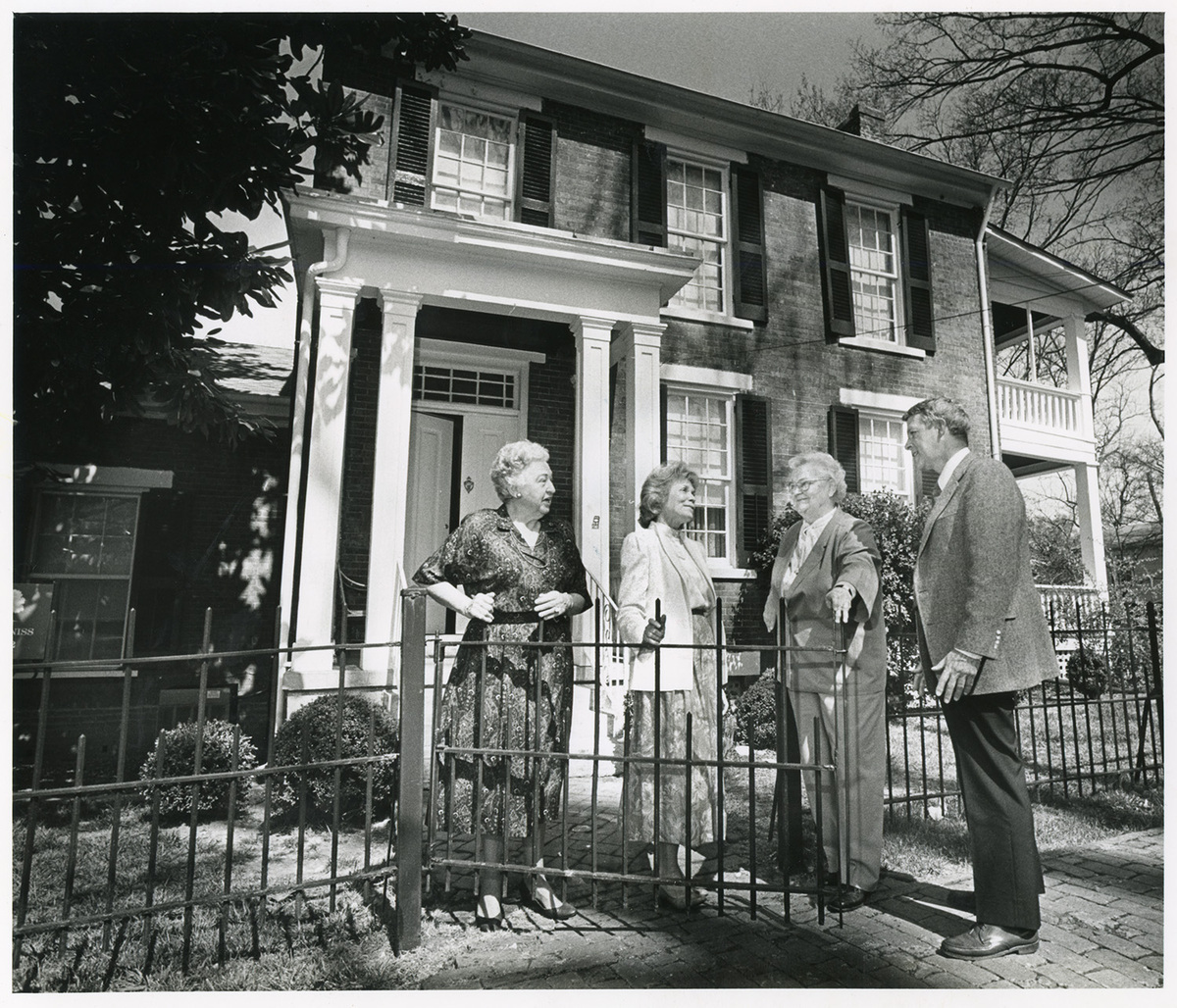 Dorothy Adair, Lynn Jones, Frances Roberts, and Harvie P. Jones stand outside Roberts' home at 603 Randolph Avenue in Huntsville.